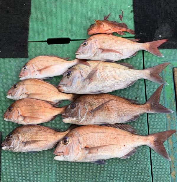 大阪の内山さんがマダイ38ー52cmを8尾。