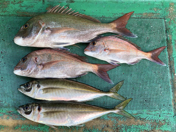 今日は良型マダイと大型マアジ他には良型マサバ、メジロが上がりました!