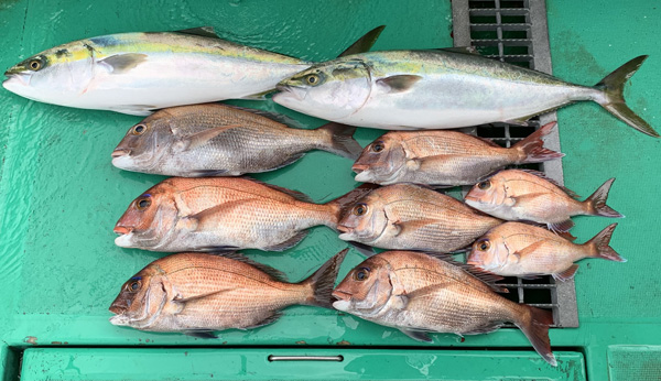 今日は、良型マダイとメジロが上がりました。
