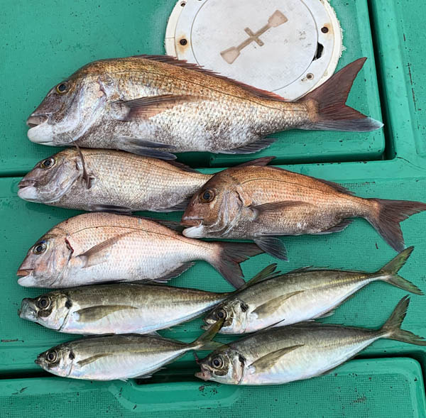 今日は、大型マダイとマアジが上がりました。