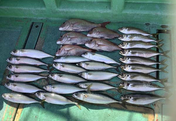 今日も良型マダイとマアジ、マサバがたくさん上がりました♪