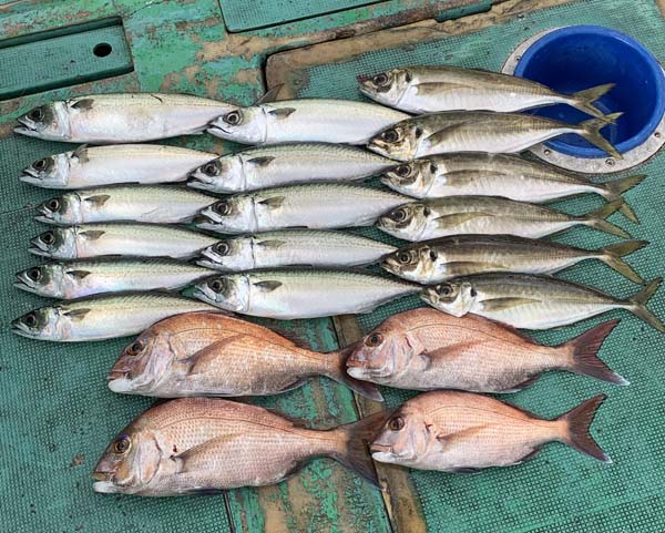 今日も、良型マダイとマアジ、マサバが上がりました♪