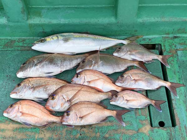 今日は、良型マダイとメジロ、他にマサバが上がりました♪