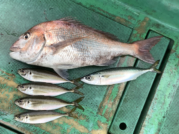 今日も、良型マダイとマアジ、マサバが上がりました!