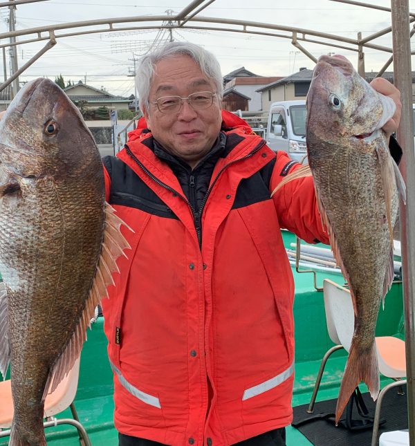 高石市の平垣内さんがマダイ68ー80cmを2尾、マアジ39ー40cmを6尾、マサバ38ー45cmを3尾。