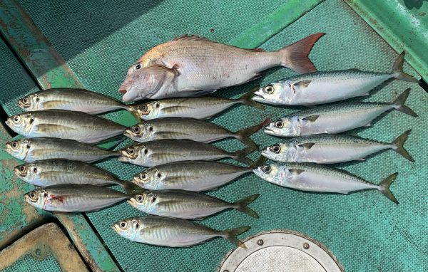 今日も、良型マダイとマアジ、マサバが上がりました!
