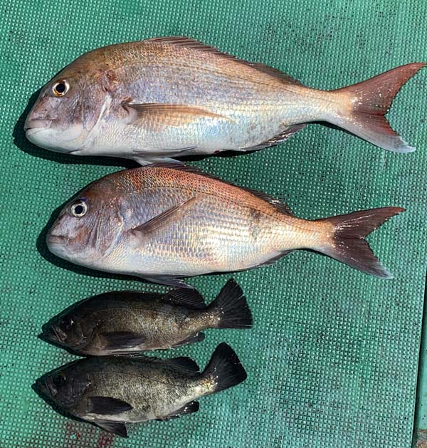 大阪の奥山さんがマダイ53ー61cmを2尾、メバル30ー31cmを2尾。
