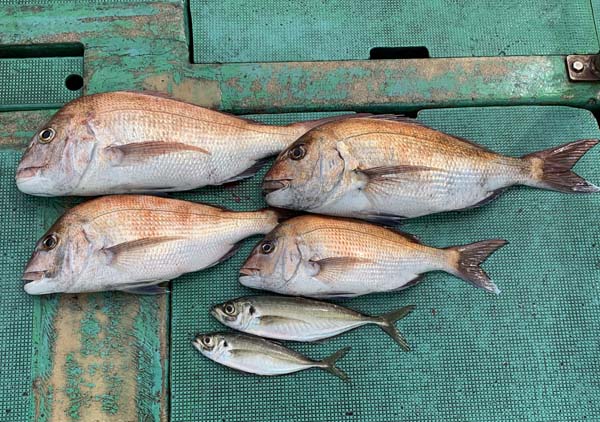 今日は、良型マダイとマアジが上がりました♪